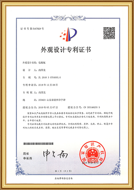 實用新型專利證書(一種甲醛清除劑的原料存儲